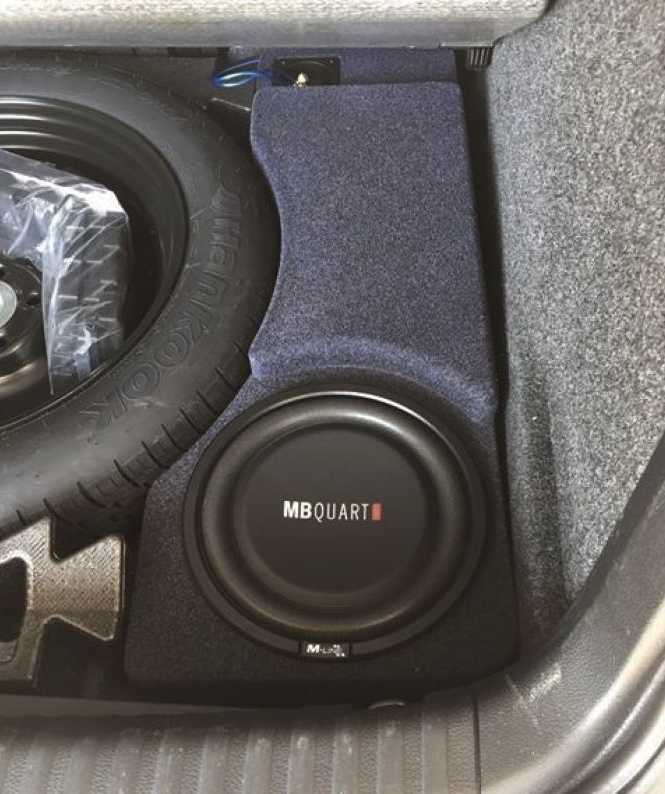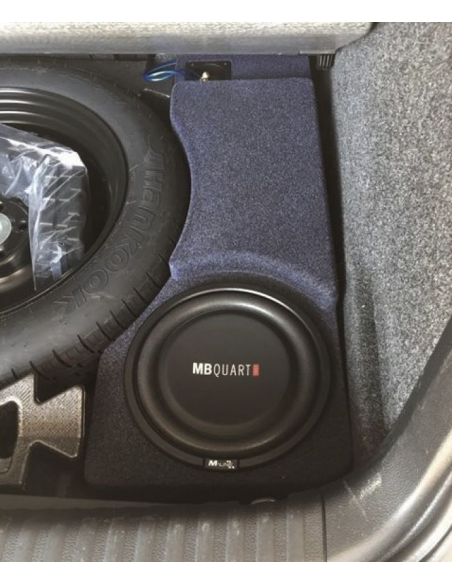Bilspecifik baslåda för installation i reservhjulsbaljan på Volkswagen Tiguan (5N). Specialanpassad baslåda utan högtalare för Tiguan 5N för diskret och smidig installation där både prestanda och funktion är i fokus. Passar perfekt i bilens reservhjuls-utrymme i bagage för att bibehålla förvaringsutrymme och ge baslådan en säker placering som ej stör vid lastning.