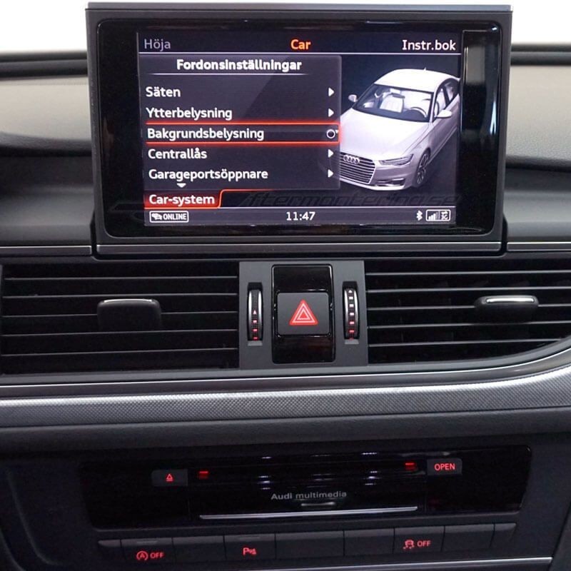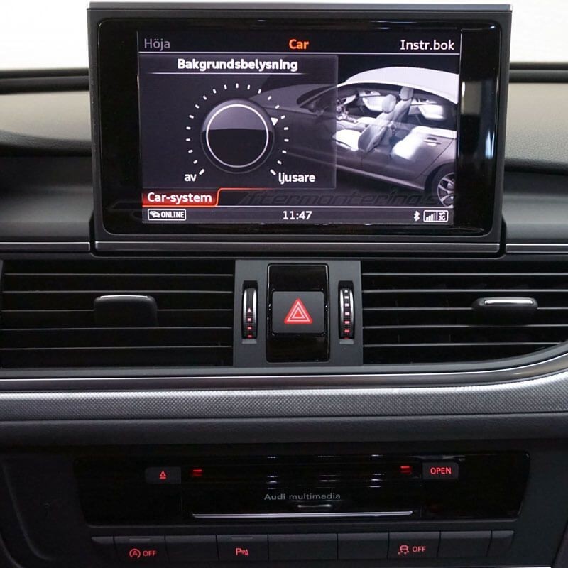 Kit för installation av Audi A6 / A7 original ambient- / utökat ljus-paket i bilens dörrfickor. Uppgradera ditt ljuspaket med omgivnings-belysning som lyser upp bilens dörrar med balanserat vitt LED-ljus från Audi original led-dioder. Välj själv hur starkt du vill att LED-lamporna lyser genom att navigera till "Bakgrundsbelysning" i bilens MMI.