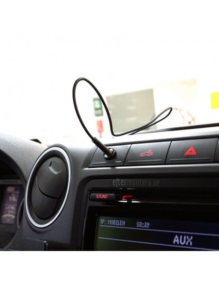 AUX-förlängning för fast installation på t.ex instrumentpanel, handskfack eller i armstöd. Diskret och minimalistisk AUX-hona som med fördel kan fästas i plastkåpor/blindlock genom att borra hål och trä genom kabeln, AUX-uttaget är format för att snabbt & smidigt fästas i hålet genom att klicka det på plats. Kabellängd på 1m som kan förlängas med normal AUX-hona>-hane.