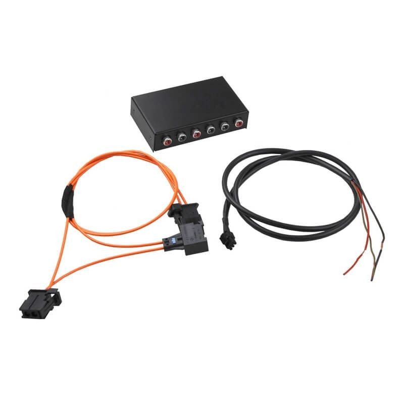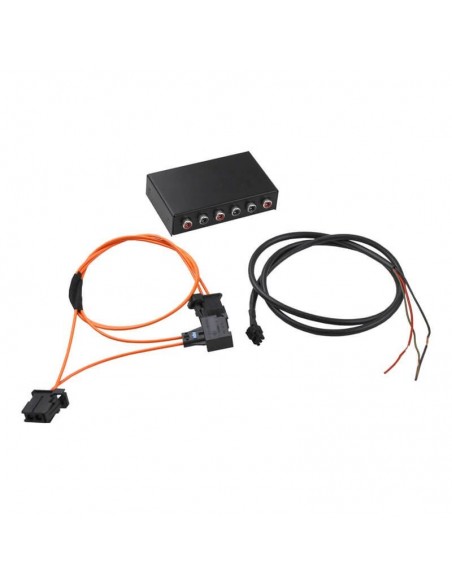Interface för byte från original-förstärkare till eftermarknads förstärkare i Audi med MMI 2G (fiber). Tillåter anslutning av eftermarknadsförstärkare i Audi A4, A5, A6, A8 & Q7 med MMI 2G samt original förstärkare. Anslutning för 6st ljudkanaler (OUT)  - Front-Right / Front-Left / Rear-Right / Rear-Left / Central / Subwoofer. Omvanlding av fiberoptisk signal till standard stereo signal med enkel installation.