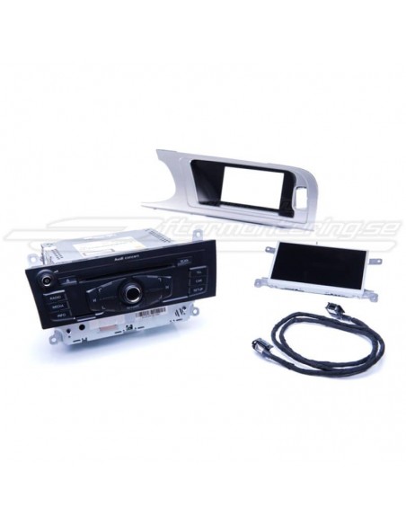 Komplett kit för eftermontering av original radio Concert för Audi A4 / A5 / Q5 utrustad med radio Chorus. Byt ut det minsta radiosystemet (Chorus) mot Audi original radio Concert med 6,5 tums färgdisplay, CD-läsare samt SD-korts läsare som tillåter uppspelning av t.ex MP3 ljudfiler. Tillåter även eftermontering av t.ex AUX, handsfree samt OPS (optical parking system).