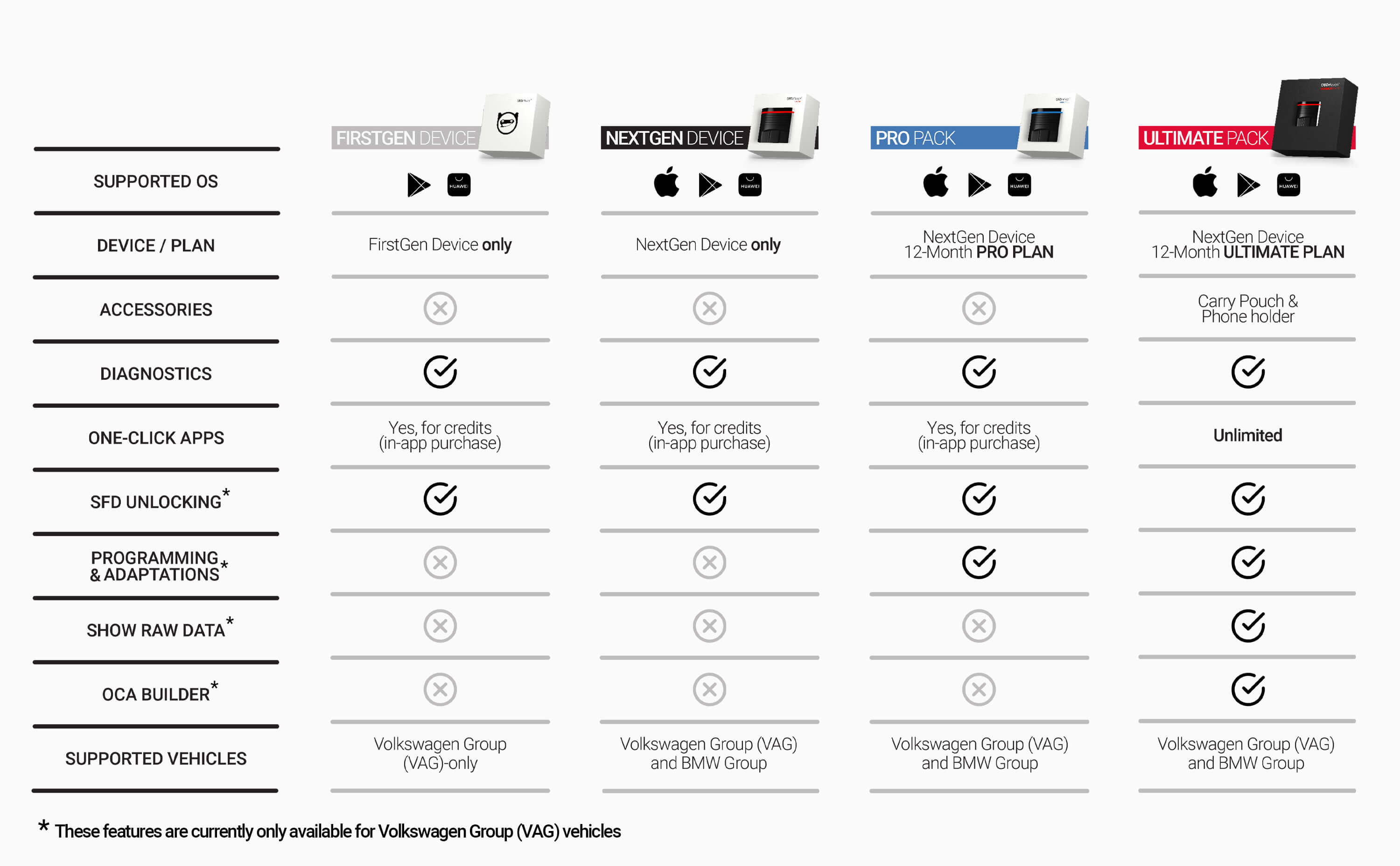 | Dela felkoder/scan | ✓ | ✓ | ✓ |