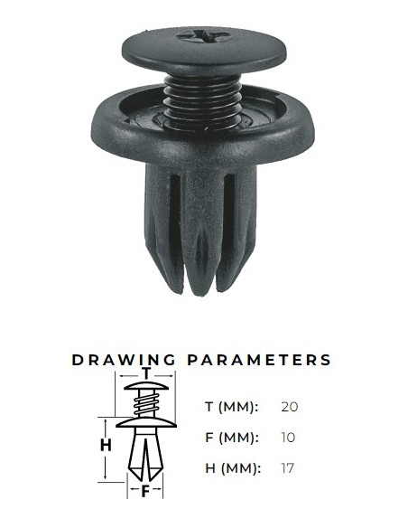Clips av plast som används i bl.a. BMW, Honda & Daewoo. Används universellt främst för motorhuv, dörrar och lister.