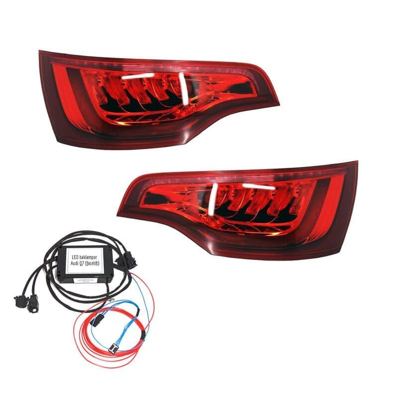 Komplett kit för eftermontering av Audi original LED bak-lyktor i Audi Q7 4L. Original Q7 facelift baklyktorna levereras med tillhörande kablage samt interface som krävs för installation / konvertering från pre-facelift/halogen baklyktor. Passar Audi Q7 innan och efter facelift. Plug-n'-play interfacet tillåter installation utan omkodning / programmering i bilen.