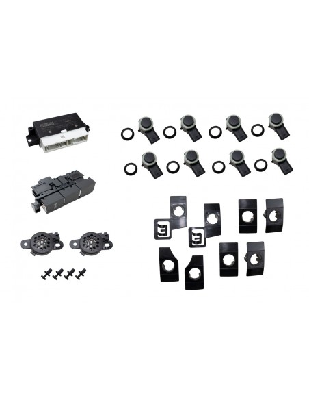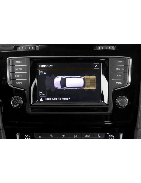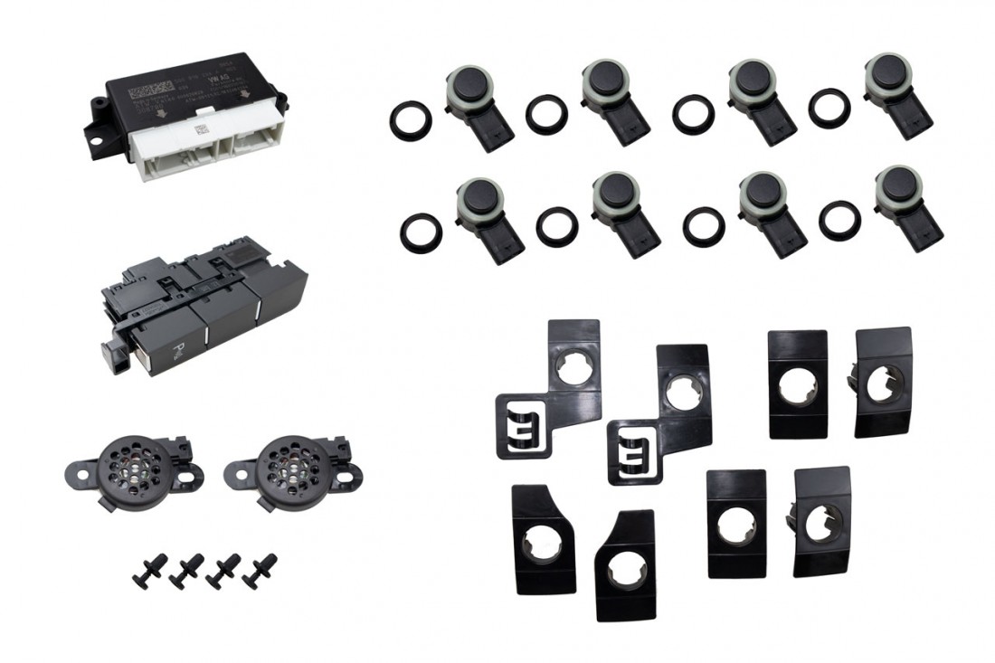 Kit för eftermontering av integrerade original-sensorer i VW Golf 7 (MK7). Komplett kit för efterinstallation av PDC (Park Distance Control) med OPS (Optical parking system) som visar avstånd och varnar för föremål i bilen både visuellt i radio/navigation och via summer/ljud. Kan även utökas med artikel 39856 för självparkerande-system (PLA).