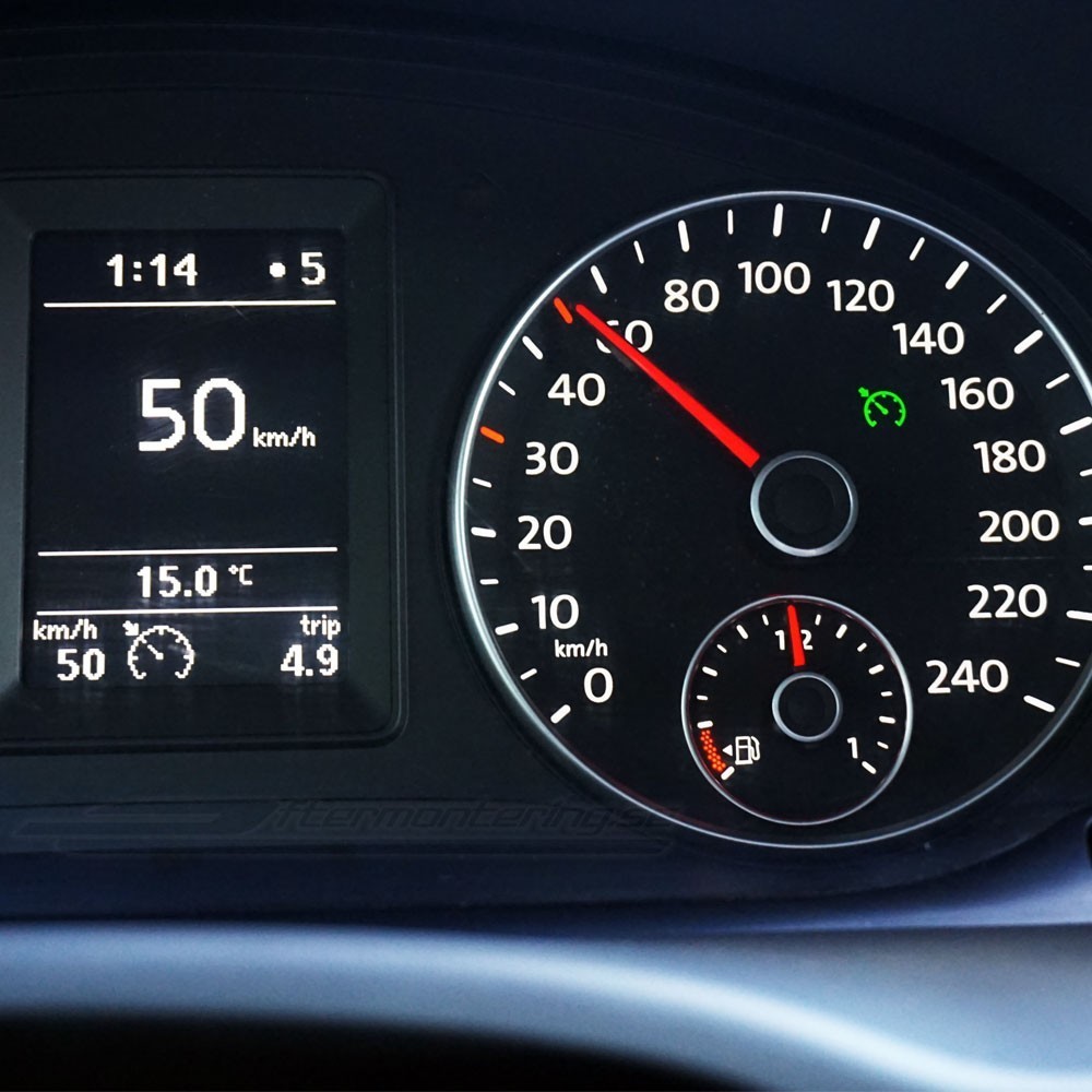 Komplett kit för eftermontering av original farthållare i Volkswagen Caddy (2K) från 2010 ➔ 2015. Efter installation får bilen tillgång till följande funktioner "SET" (fortsätt i aktuell hastighet), "RES" (återgå till senast sparade hastighet), "+" (öka hastigheten) & "-" (sänka hastigheten) via ratt-spak/-knappar. Spara bränsle medan du kör trafiksäkert och bekvämt!