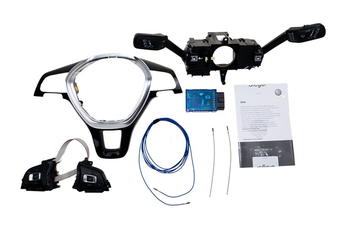 Kit för eftermontering av original farthållare i Volkswagen Polo AW1. Farthållaren reglerar och övervakar automatiskt hastigheten i din VW Polo och styrs via reglaget som monteras på rattstången samt via instrumenthuset / färddatorn sköts inställningar.
